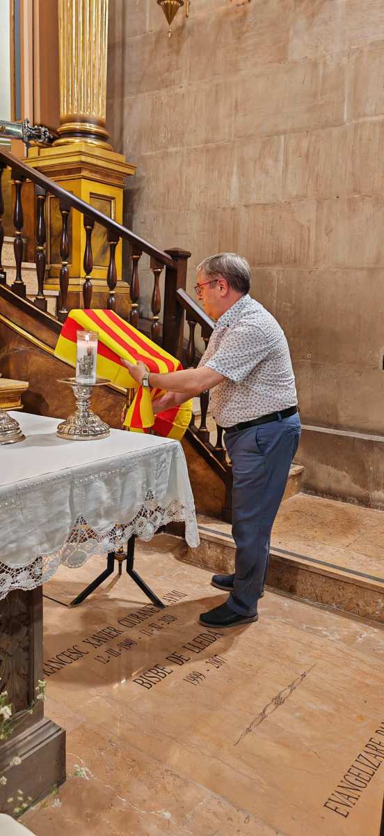El bisbe de Lleida Mons. Salvador Giménez Valls, acompanyat pel monjo de Montserrat i rector de la basílica el P. Joan M. Mayol, presidí l’Eucaristia, solemnitzada pel Petit Cor de la catedral. Els primers bancs del temple van ser ocupats pel president de la Confraria Josep Estruch, amb la seva Junta directiva, satisfeta de l’obra feta. Fins i tot la Paeria va sumar-se a la inauguració amb quatre regidores, Jordina Freixanet, d’ERC; Violant Cervera i Neus Caufapé  i Maria Antoni maller, del PP.