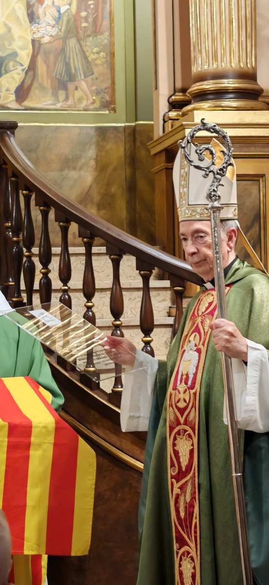 El bisbe de Lleida Mons. Salvador Giménez Valls, acompanyat pel monjo de Montserrat i rector de la basílica el P. Joan M. Mayol, presidí l’Eucaristia, solemnitzada pel Petit Cor de la catedral. Els primers bancs del temple van ser ocupats pel president de la Confraria Josep Estruch, amb la seva Junta directiva, satisfeta de l’obra feta. Fins i tot la Paeria va sumar-se a la inauguració amb quatre regidores, Jordina Freixanet, d’ERC; Violant Cervera i Neus Caufapé i Maria Antoni maller, del PP.