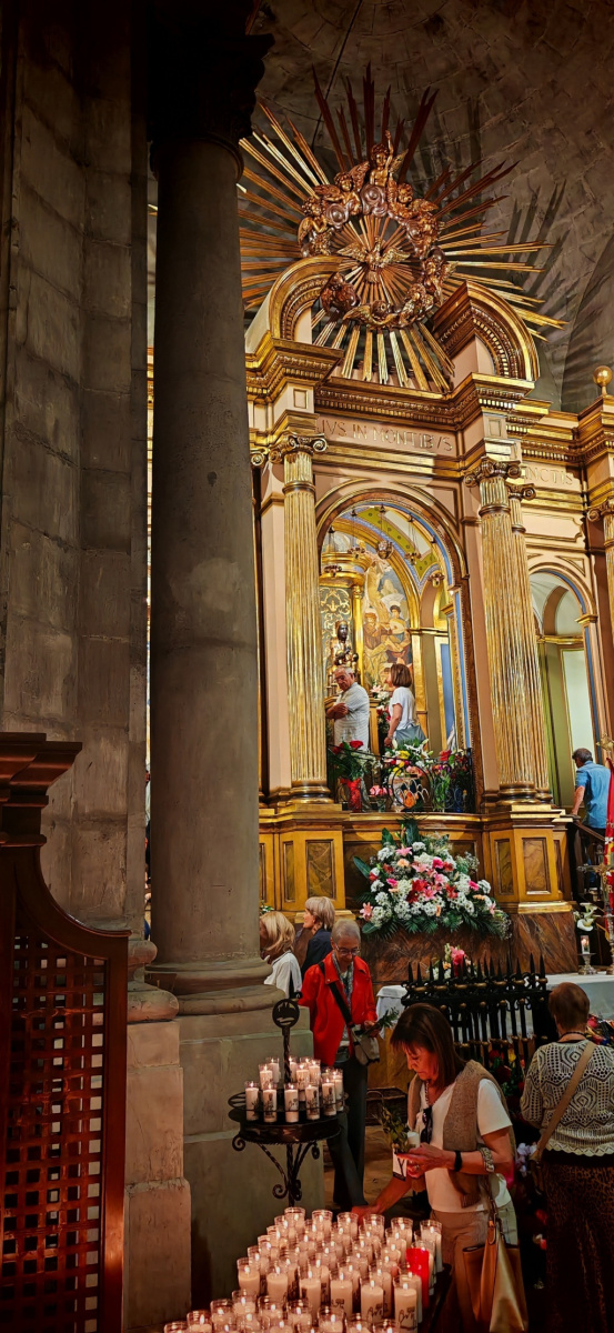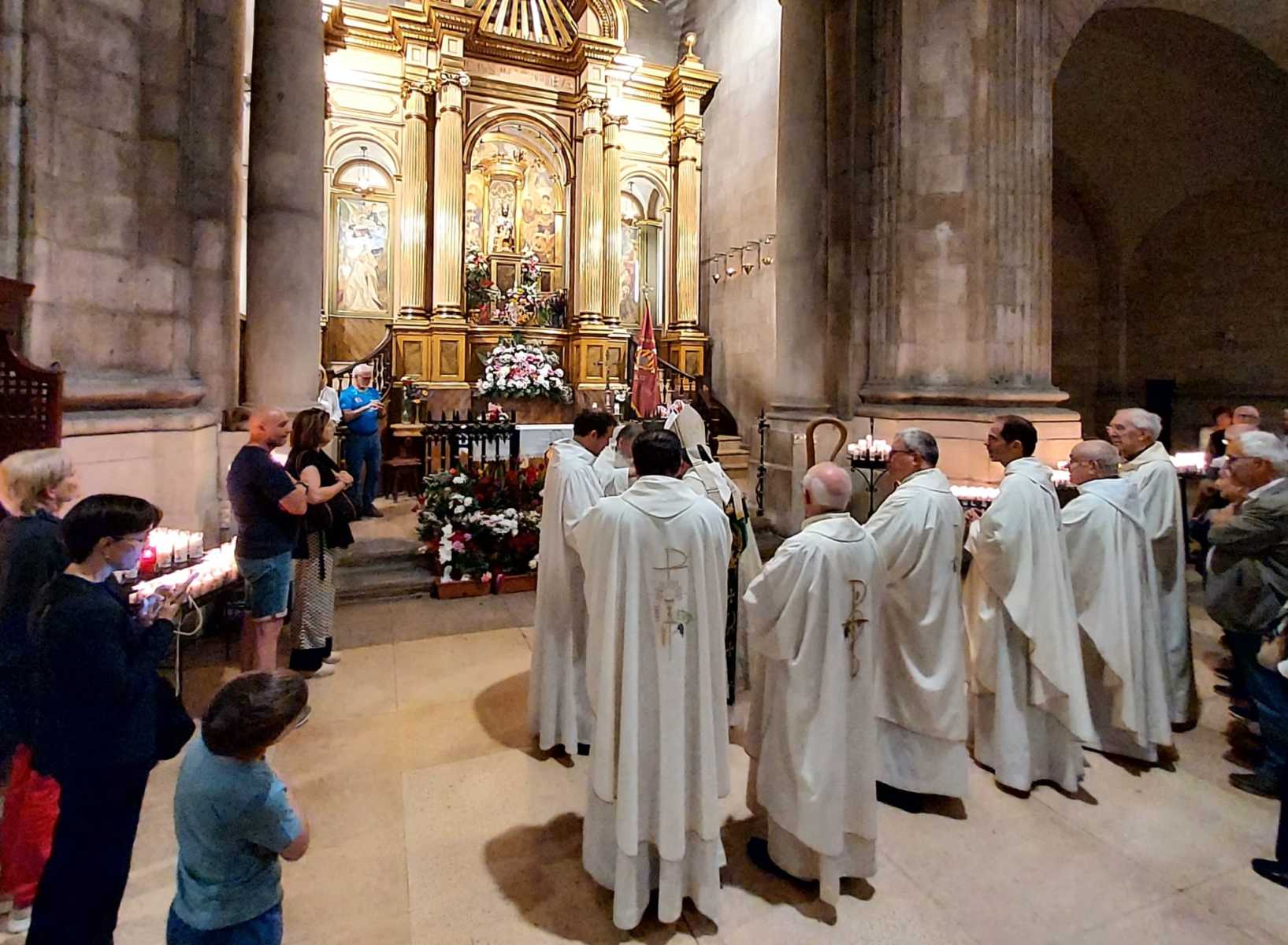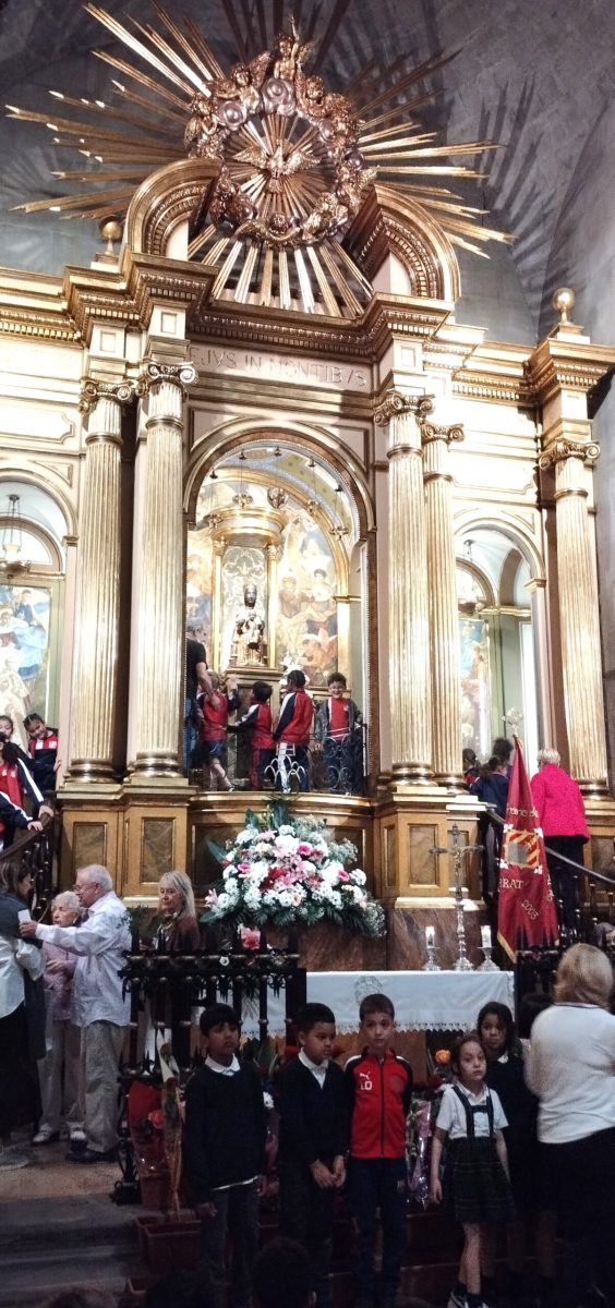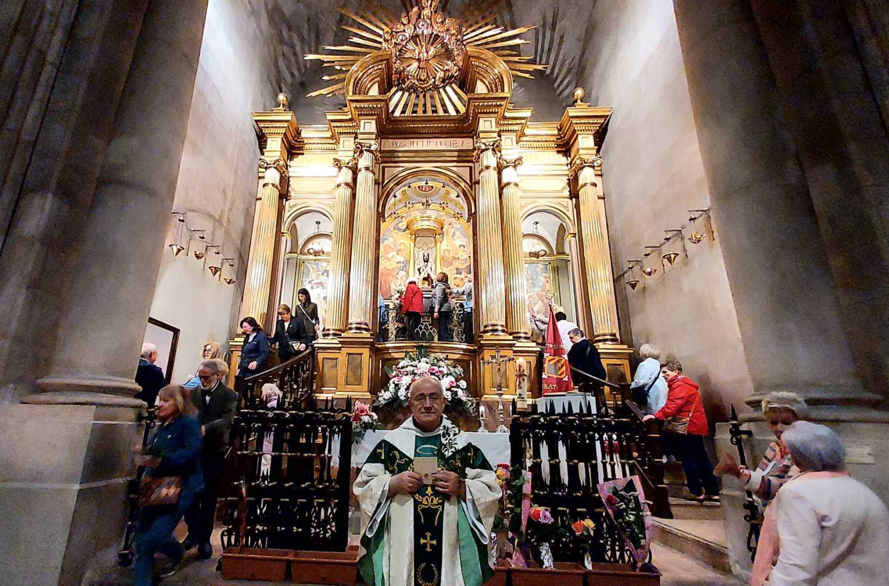 Finalitzada la celebració el bisbe Daniel i concelebrants van dirigir-se fins l’altar de la Patrona per tal de cantar-hi la Salve i el Virola, per tot seguit pujar a venerar –la al seu cambril.