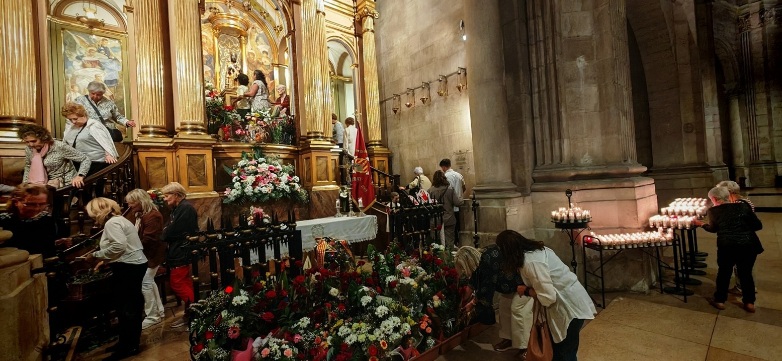 De multitudinària pot qualificar-se l’ofrena de flors i ciris que tingué lloc ahir, festa de la Mare de Déu de Montserrat Patrona de Catalunya. Fou protagonitzada per centenars de lleidatans que va seguir una tradició arrelada, van anar a venerar-la al seu altar de la Catedral de Lleida, que va romandre oberta de 9 del matí a les 9 del vespre sense interrupció.